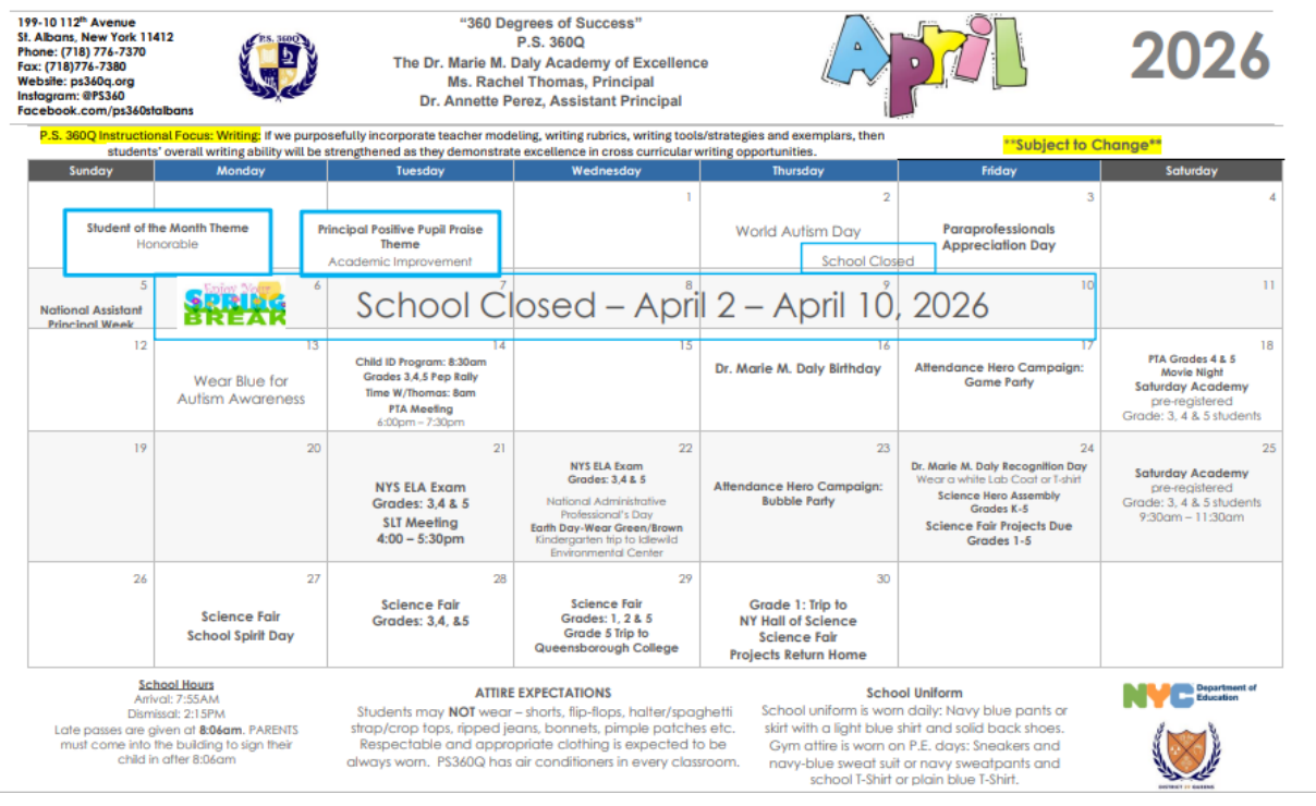 Use the following link to access the NYC DOE 2025-2026 Calendar